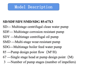 La bomba de tipo SD se utiliza para transportar agua limpia que no contiene partículas sólidas y tiene una temperatura inferior a 80C o líquidos con propiedades físicas y químicas similares al agua limpia. Adecuado para el suministro y drenaje de agua en minas, fábricas y ciudades. La bomba de tipo SDF se utiliza para transportar líquidos con una temperatura de -20C~105C, sin partículas sólidas y líquidos corrosivos. La bomba tipo SDY es adecuada para transportar partículas sólidas. Productos derivados del petróleo con una temperatura de -20C~105C y una viscosidad de menos de 120 centímetros. La bomba SMD multietapa resistente al desgaste es adecuada para el transporte de minas de carbón con un contenido de partículas que no supere el 1,5%. (tamaño de partícula inferior a 0,5 mm) agua de mina neutra con una temperatura no superior a 40C y otras aguas residuales similares. La bomba SDG es una bomba de agua de alimentación de caldera segmentada de varias etapas. Se utiliza para transportar agua limpia sin partículas sólidas (abrasivos) u otros líquidos con propiedades físicas y químicas similares al agua limpia. Es adecuado para agua de alimentación de caldera de media y baja presión, y también se puede utilizar para fines generales. Bomba de agua limpia centrífuga de varias etapas. La temperatura del líquido transportado es de -20~150C. La bomba centrífuga de varias etapas SD/Y/F/G es un producto desarrollado de forma independiente de nuestra empresa.